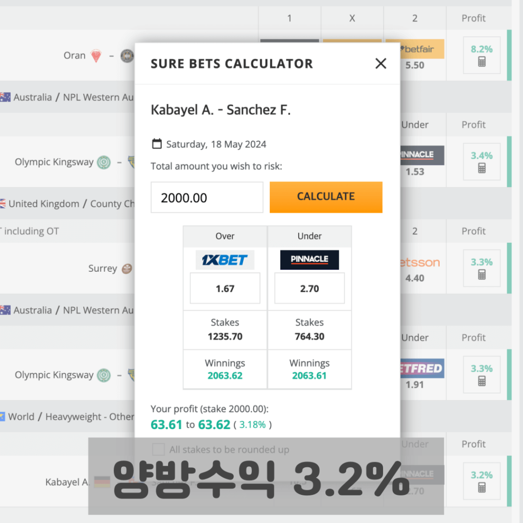 양방배팅 확정수익 3.2%
